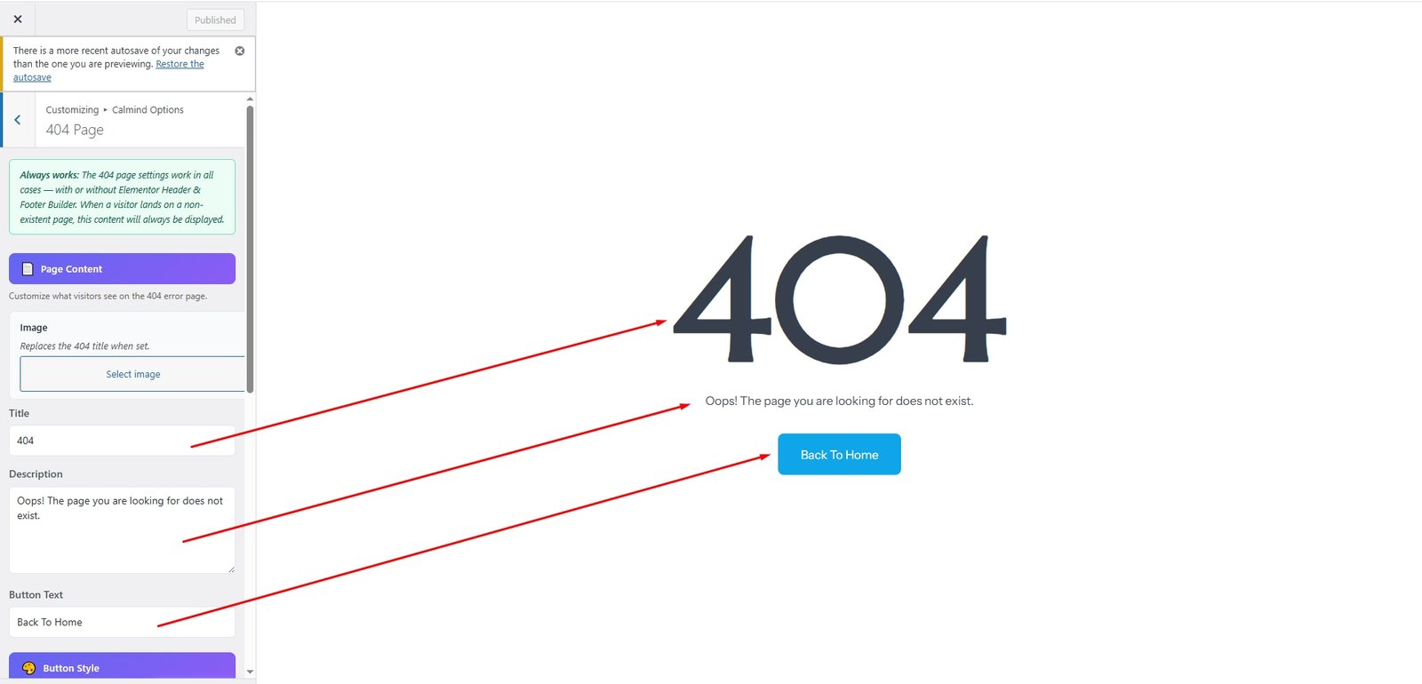 You can easily customize your 404 page content. This default layout appears when a visitor lands on a broken or incorrect link. You can replace the text with your own message or even use an image instead. If you add an image, the default 404 text will automatically be hidden.