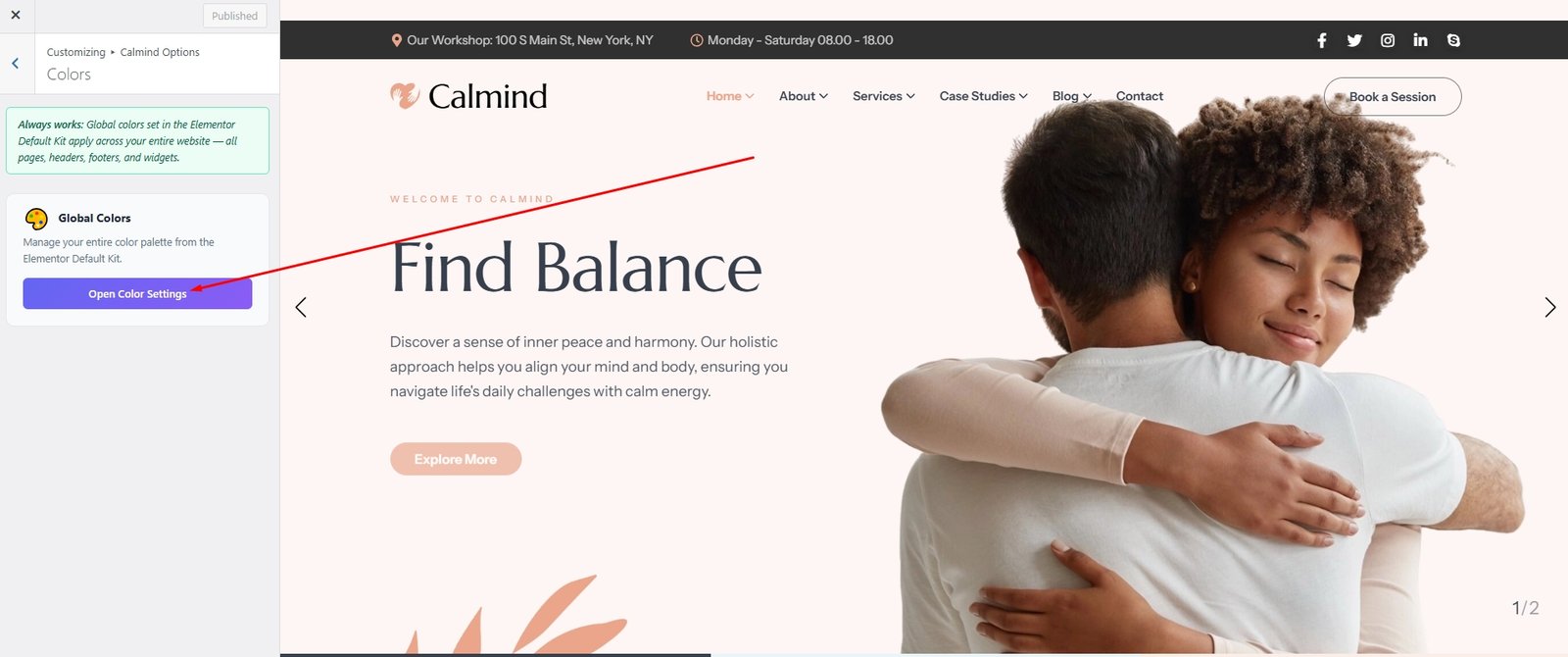Click the Global Colors link to access Elementor’s global color settings.