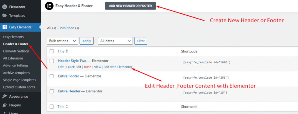 Then you will get All header and footer Layouts here and you can make your new header or footer as well.