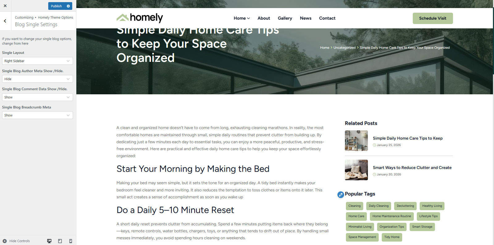 Requirements Theme Installation Required Plugin [1] Plugins Documentation and Video Tutorials Importing Demo Content How To Set Default Home Page Theme Customization Options [4] Homely Default Settings 404 Page Blog Options Elementor Global Site Settings Edit Header Information [1] Header Menu Options Edit Footer Information Add Shortcode Elementor Widget Troubleshooting [2] Demo content installation Failed 404 Error in all pages Update The Theme [3] Envato Market Plugin Manual Update Update by FTP Locate your Envato Item Purchase Code Contact Translations Home / Documentation / Homely – Single Property WordPress Theme / Theme Customization Options Blog Options You can change your blog page and single blog page option in this set Doc navigation < 404 Page Elementor Global Site Settings > Was this page helpful? Yes No Leave a Reply Cancel replyYour email address will not be published. Required fields are marked *Comment * Name* Email* Website Save my name, email, and website in this browser for the next time I comment.