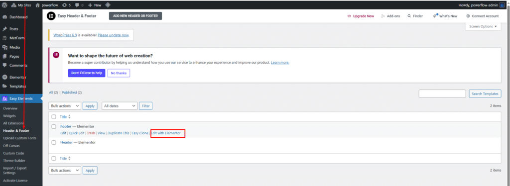 Then you will get All header and footer Layouts here and you can make your new header or footer as well.