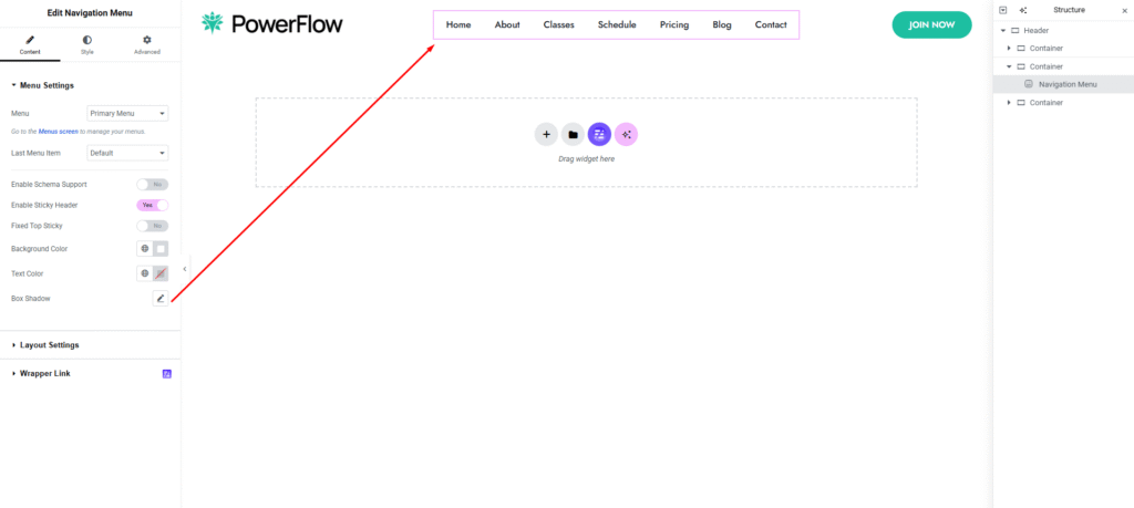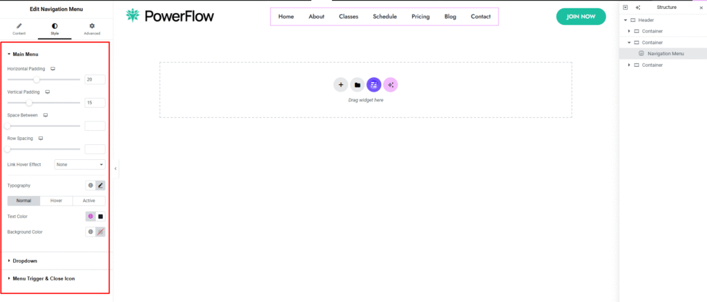 This shows how to style your header or primary menu. First, create your site menu and give it a name—by default, we use Primary Menu. Then, search for the Navigation Menu widget in Elementor and drag it to any location where you want your menu to appear.
