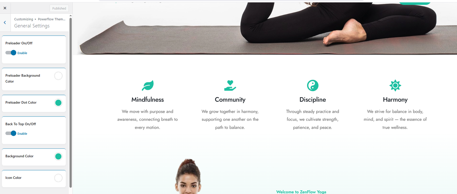 Appearance -> Customizer -> Powerflow Theme Options -> General Settings