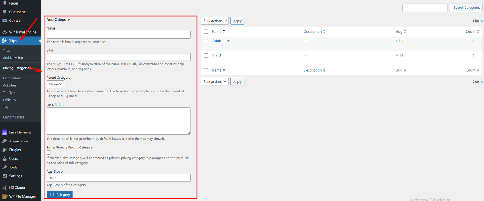 Here you can create or edit your Price Categories.